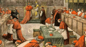 En 1621, sous le pontificat de Grégoire XV, le vote à bulletins secrets est définitivement instauré, bien qu’il ait déjà été mis en avant auparavant (notamment lors du quatrième concile du Latran, en 1215).