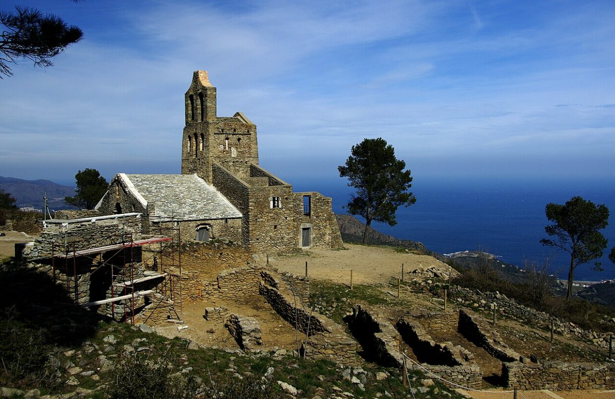 Image mise en avant : Vue d’ensemble de l’église Santa Helena de Rodes. El Port de la Selva