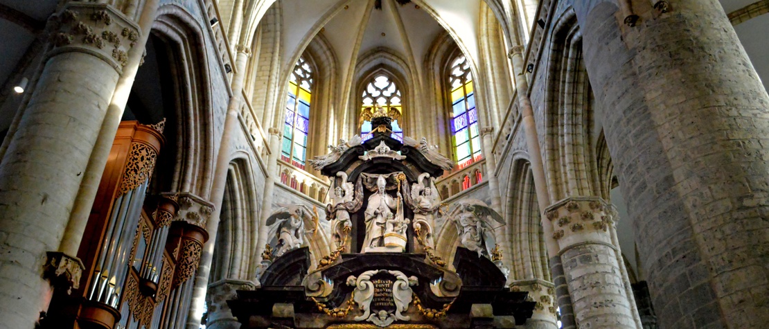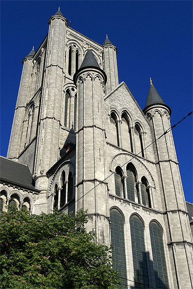 Le clocher, qui fut construit en partie par la ville de Gand servait de poste d’observation et abritait les cloches de la cité avant la construction du Beffroi de Gand. Une des pièces maîtresses de l’église est son orgue qui a été fabriqué par le célèbre facteur d’orgues français Aristide Cavaillé-Coll.