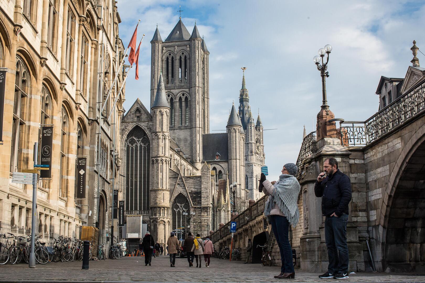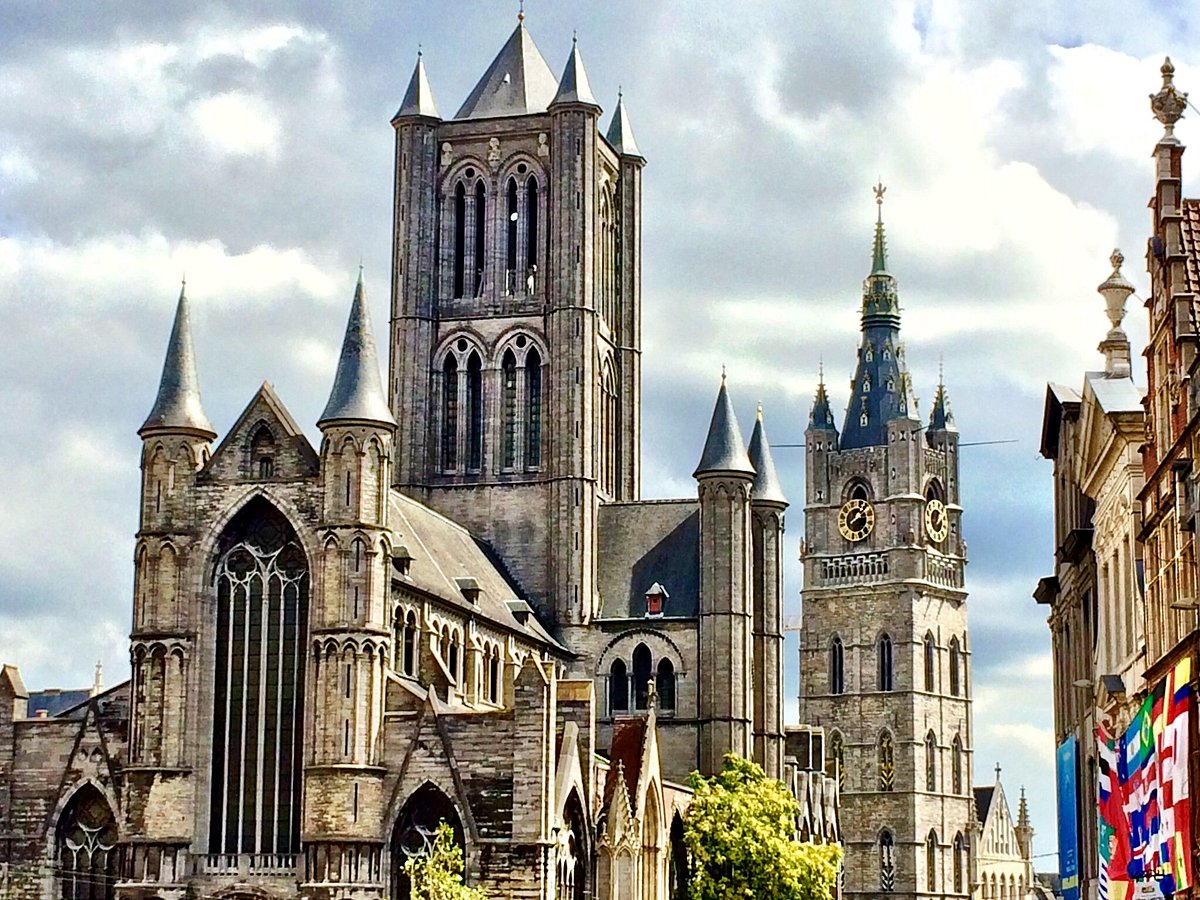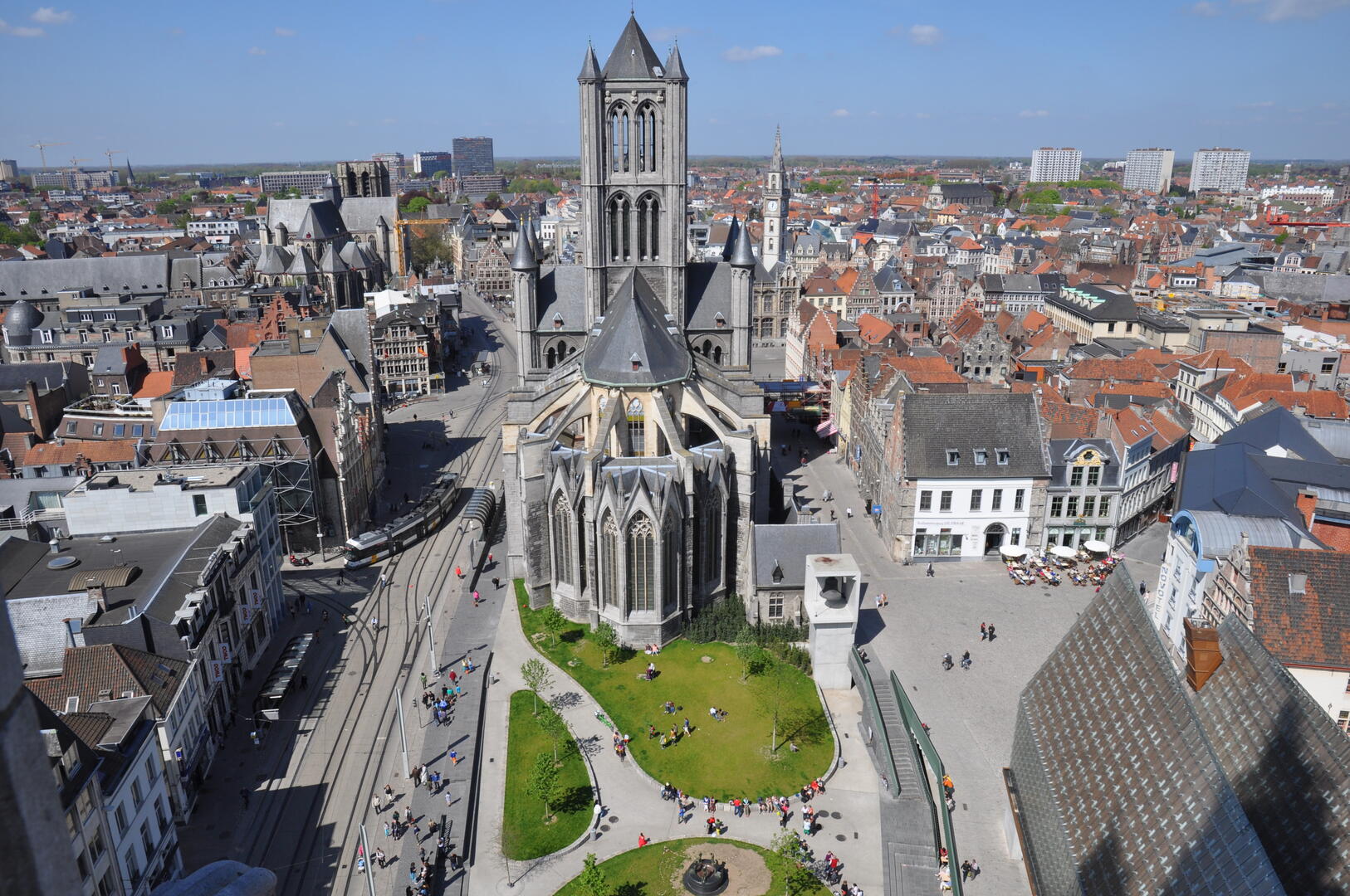 Les trois tours de Gand. Saint-Nicolas au centre.
