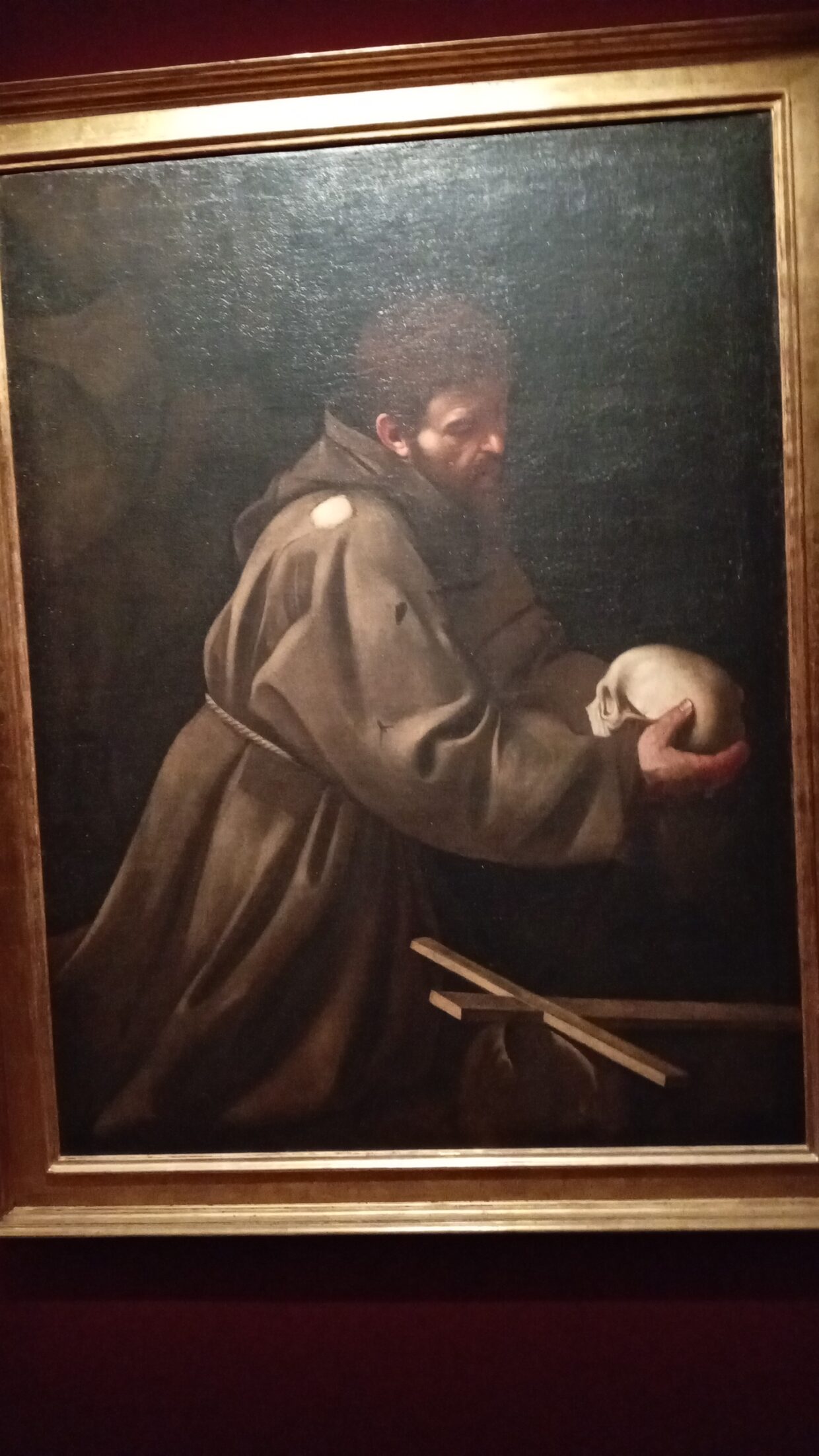 Le tableau représente François d’Assise, fondateur de l’ordre des Frères mineurs et grande figure de l’Église catholique, en profonde méditation devant un crâne humain qu’il tient à la main. Un grand crucifix est posé devant lui, et le décor très sombre et indistinct focalise toute l’attention du spectateur sur le seul personnage.