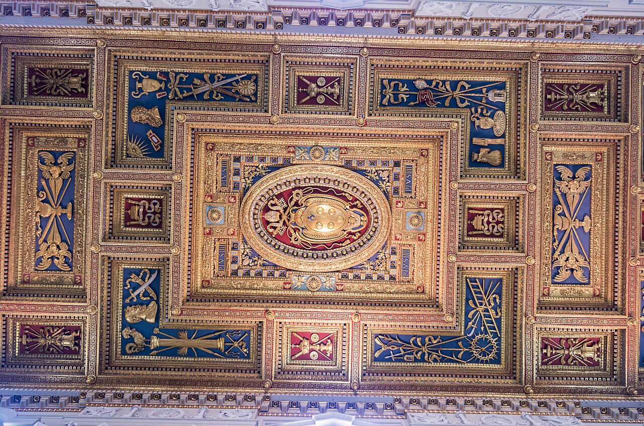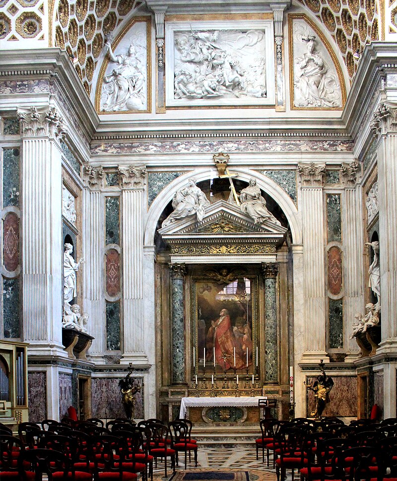 Ses immenses portes d’entrée en bronze proviennent de la Curie Julia, réinstallées là au milieu du XVIIe siècle.